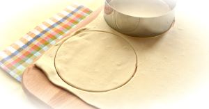 Вырежьте из теста круглые заготовки для самсы, используя широкое кулинарное кольцо или обычное блюдце.
