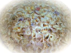 Выложить тесто вместе с яблоками в форму и поставить выпекаться в заранее разогретую до 180°С духовку.