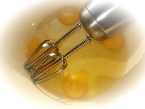 Яйца разбиваем в посуду, в которой будем их взбивать.