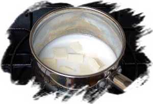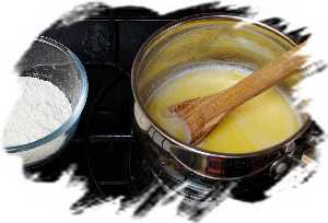 На среднем огне растопить масло и довести жидкость до кипения, после чего быстро всыпать просеянную муку.