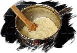 Затем огонь убавить и вымешивать тесто в течение минуты, пока оно не превратится в однородную массу, легко отстающую от стенок кастрюли.