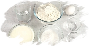 Для приготовления этого блюда нам потребуется: кефир, вода, мука, яйцо куриное, сахар, соль, сода, масло растительное.