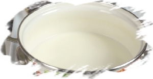 Смешайте в кастрюле кефир с водой и поставьте её разогреваться на медленный огонь.