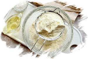 В эту ёмкость просейте весь объём муки, удалив таким образом посторонние примеси и насытив её кислородом.