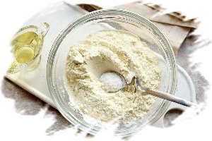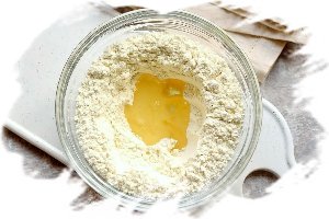 В серединке смеси сделайте углубление, влейте растительное масло.