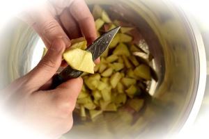 Яблоки моем, очищаем от кожицы и сердцевинок, нарезаем кусочками.