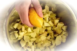 И поливаем яблоки лимонным соком, чтобы не потемнели.