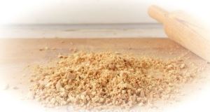 Обрезки от коржей измельчить при помощи скалки или блендера в мелкую крошку. Обсыпать торт крошкой сверху и с боков.