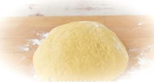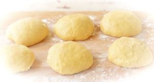 Тесто разделить на 6 одинаковых по размеру колобков и оставить отдохнуть на 15 минут. Больше времени не нужно, а то тесто начнёт твердеть.