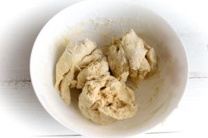 Быстро вымешиваем упругое тесто и делим его на три части.