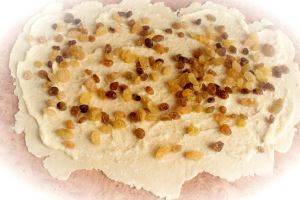 Посыпаем изюмом (тоже третью от общего количества, разумеется).