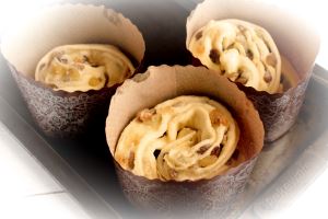 Несмотря на то, что в рецепте нет ароматических добавок, кроме щепотки ванилина, тесто получается ароматное и вкусное. Однако пряности сделают его только лучше: стоит добавить в начинку ложечку корицы, щепотку кардамона или мускатного ореха – и ваш кулич-краффин станет просто бесподобным!