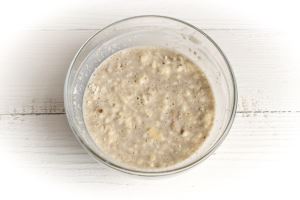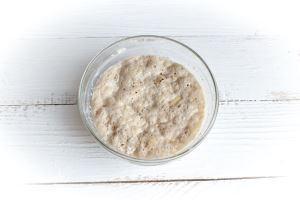 Смешиваем и оставляем на 15 минут в тёплом месте, чтобы ожили дрожжи.