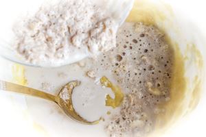 Объединяем обе массы – масляно-яичную и дрожжевую.