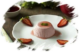 Если вы хотите более эффектной подачи, следует готовить это блюдо в индивидуальных силиконовых формочках. После застывания формочки надо опустить в миску с горячей водой на 10 секунд (не больше!), перевернуть десерт на плоскую тарелку и аккуратно отделить от него силикон. Полученный аппетитный десерт можно по желанию полить клубничным сиропом и украсить на своё усмотрение.