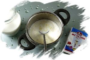 Сначала следует развести желатин в молоке и оставить для набухания согласно инструкции на упаковке.