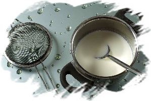 В случае дешёвого гранулированного желатина после его растворения в нём могут оставаться небольшие крупинки, поэтому такой раствор пропускаем через сито.