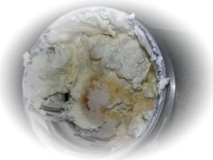 В это время 60 мл воды ставим на огонь, размешиваем в ней агар-агар и доводим до кипения. Затем воду с агар-агаром добавляем в творожную массу и ложкой всё хорошо перемешиваем.