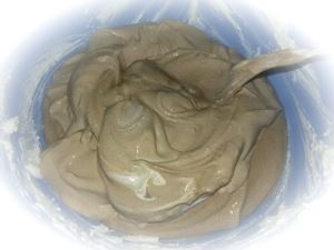 Две пачки обезжиренного творога по 180 г. складываем в чашу блендера, добавляем молоко, заменитель сахара, какао-порошок. Взбиваем до образования кремовой массы.