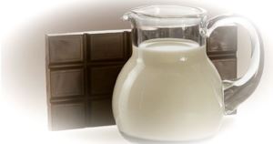 Для приготовления блюда подготовьте 500 мл молока и 100 граммовую плитку чёрного шоколада.