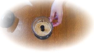 Помещаем в блендер печенье и делаем из него крошку.