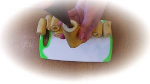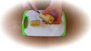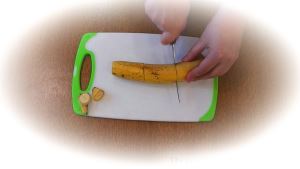 Узким ножом проделываем в каждой части банана сквозное отверстие.
