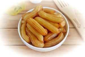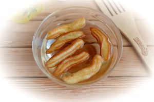 Извлеките из масла готовые тулумбы, погрузите их в остывший сахарный сироп на 5-10 минут, чтобы палочки могли хорошенечко пропитаться.