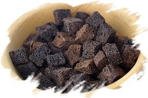 Нарежьте бородинский или другой ржаной хлеб на маленькие кусочки, кубиками или прямоугольниками.