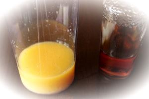 В отдельную ёмкость наливаем 60 мл апельсинового (лучше свежевыжатого) сока.