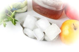 Если вместо воды влить в формочки яблочный сок, получится идеальный коктейль без добавления воды.