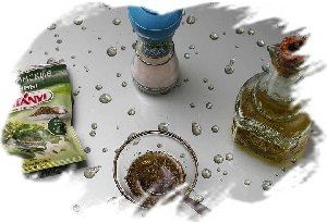 В небольшой миске смешать оливковое масло, соль и любые специи на ваш вкус.
