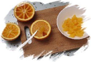 Далее для приготовления салата с индейкой необходимо порезать мякоть апельсина на небольшие ломтики.