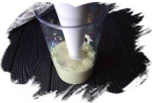Взбиваем смесь блендером с ножом – до получения консистенции майонеза.