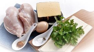 Для работы нам понадобится куриное филе, яйцо, слоёное тесто, петрушка, сыр, приправа для курицы, соль, перец, кунжут белый и чёрный (по желанию).