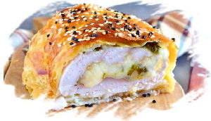 Хрустящее тесто, сочное куриное мясо и нежный сыр – это очень вкусно!