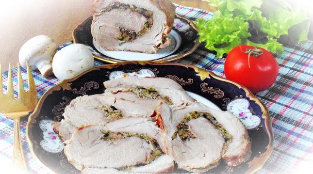 Рулет из свинины с грибами и сыром