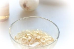 Очистить лук и измельчить, залить уксусом 6% на 5-10 минут.